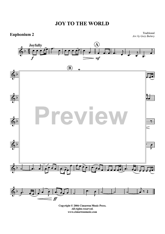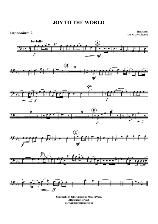 Digital Sheet Music for Joy to the World - Euphonium 2 BC/TC by , Gary Buttery, Traditional scored for Tuba Ensemble; id:358328