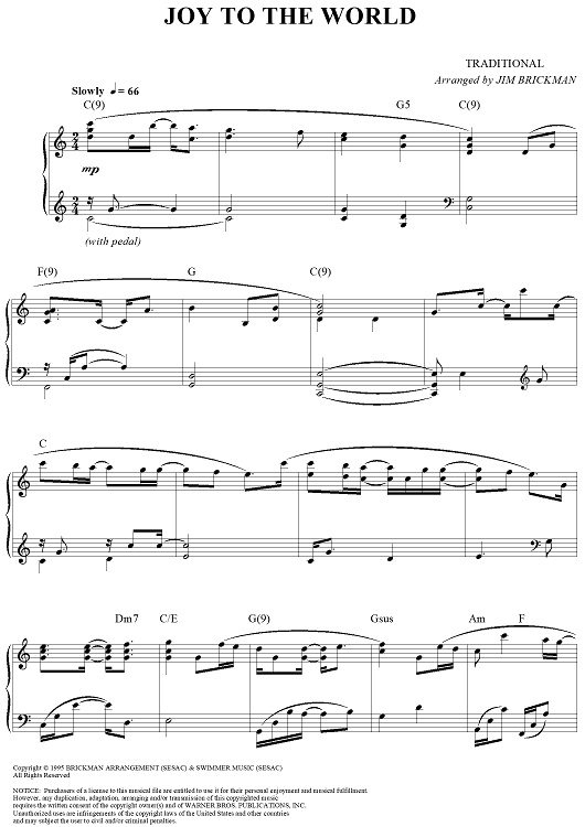 "Joy to the World" Sheet Music by Jim Brickman