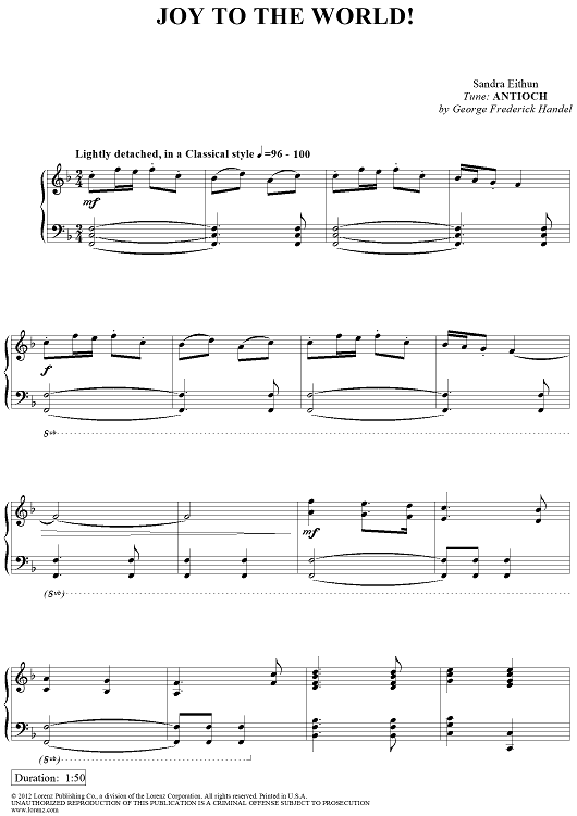 Digital Sheet Music for Joy to the World! by George Frideric Handel, Sandra Eithun scored for Piano Solo; id:437703