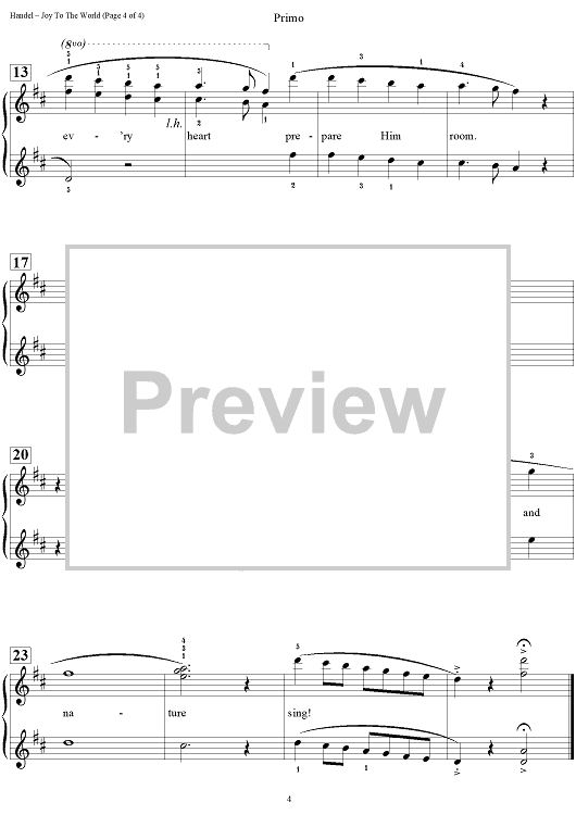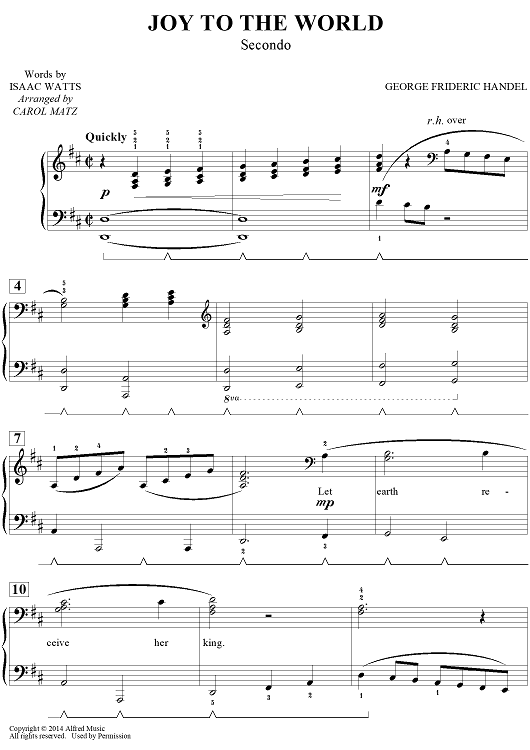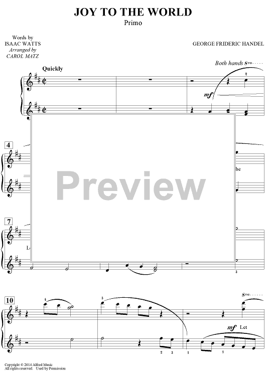 Digital Sheet Music for Joy to the World by George Frideric Handel, Isaac Watts, Carol Matz scored for 1 Piano, 4 Hands; id:454271