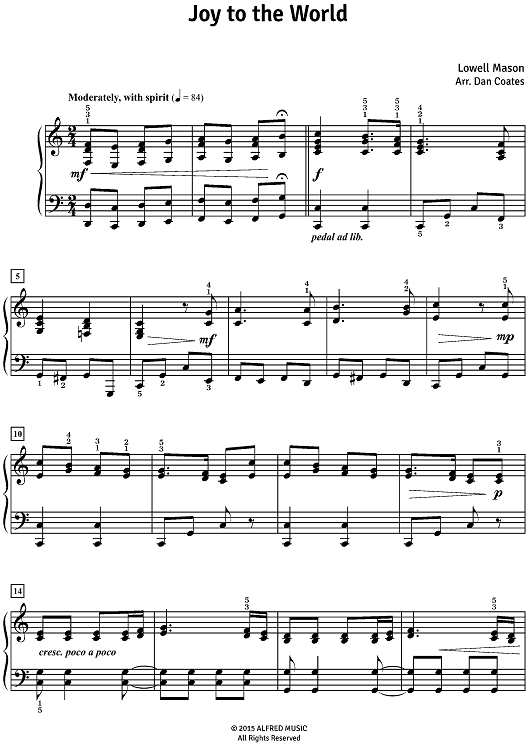 Digital Sheet Music for Joy To The World by Dan Coates, Lowell Mason scored for Piano Solo; id:501192