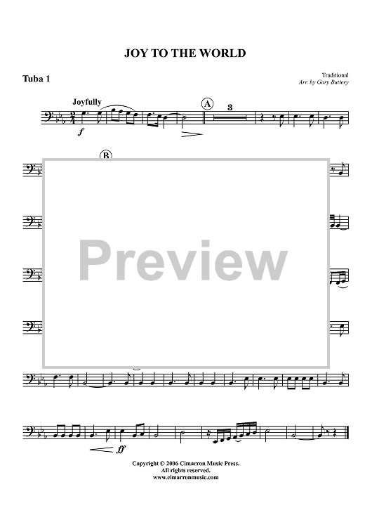 Digital Sheet Music for Joy to the World - Tuba 1 by , Gary Buttery, Traditional scored for Tuba Ensemble; id:358329