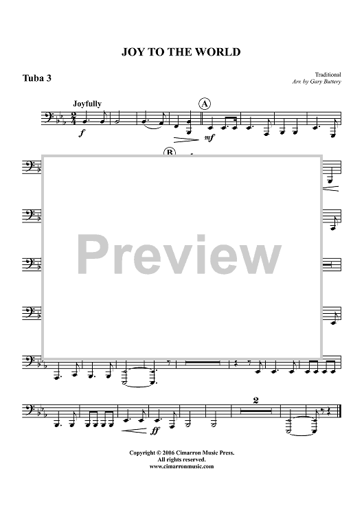 Digital Sheet Music for Joy to the World - Tuba 3 by , Gary Buttery, Traditional scored for Tuba Ensemble; id:358331