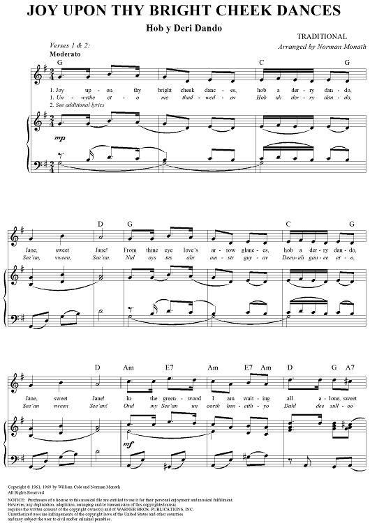 Digital Sheet Music for Joy Upon Thy Bright Cheek Dances by Norman Monath, Traditional scored for Piano/Vocal/Chords; id:261477