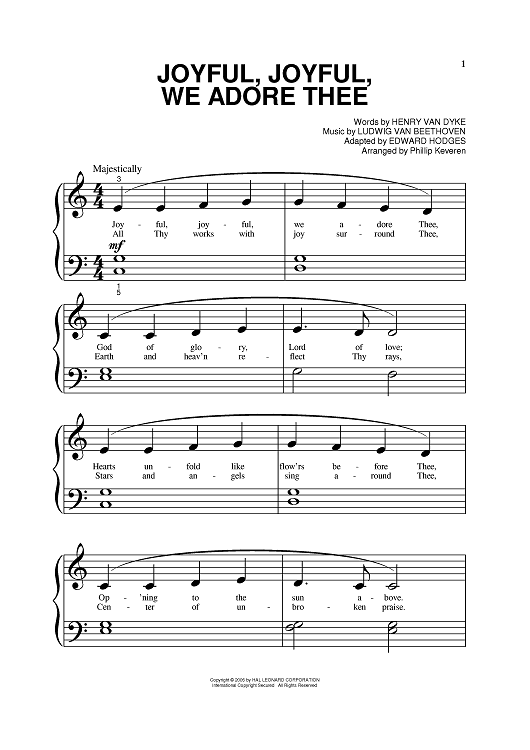"Joyful, Joyful, We Adore Thee" Sheet Music by Ludwig van Beethoven