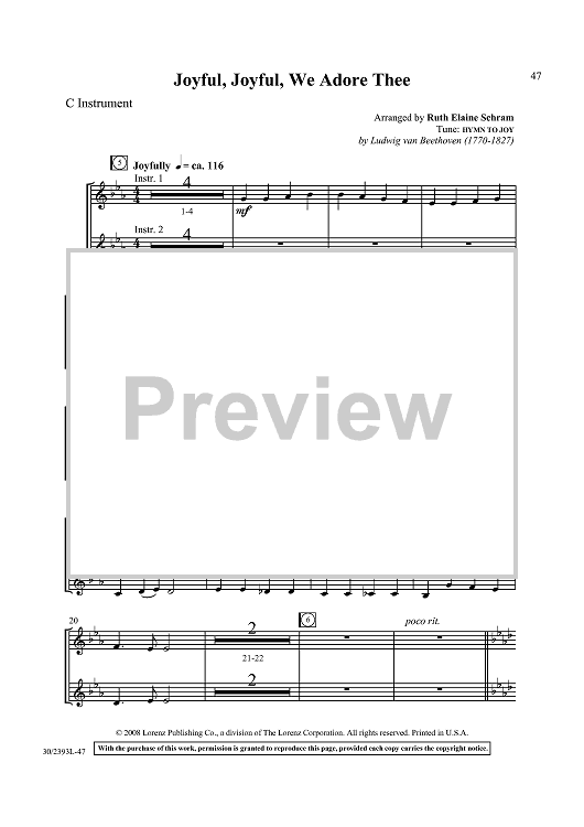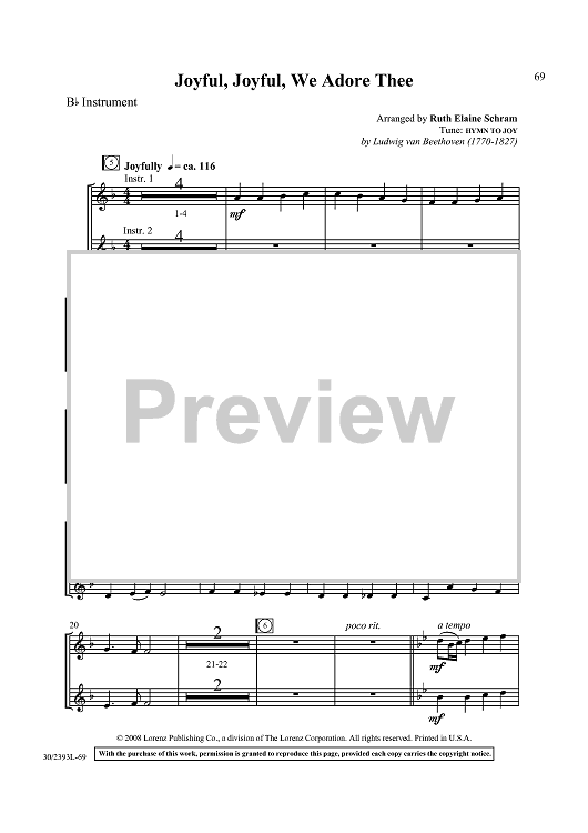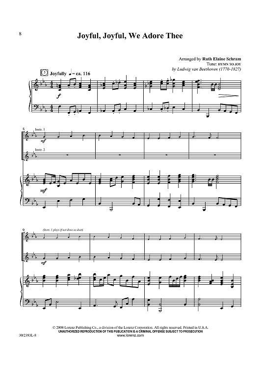 Digital Sheet Music for Joyful, Joyful, We Adore Thee by Ludwig van Beethoven, Ruth Elaine Schram scored for Keyboard, C Instrument, Bb Instrument; id:433438
