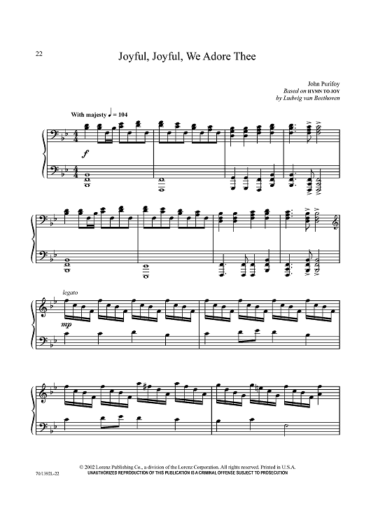 Digital Sheet Music for Joyful, Joyful, We Adore Thee by Ludwig van Beethoven, John Purifoy scored for Piano Solo; id:433575