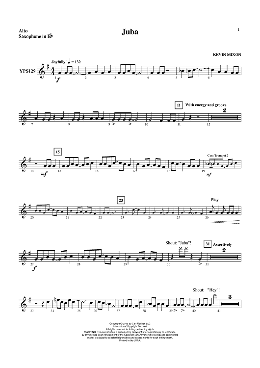 "Juba - Alto Sax" Sheet Music by Kevin Mixon