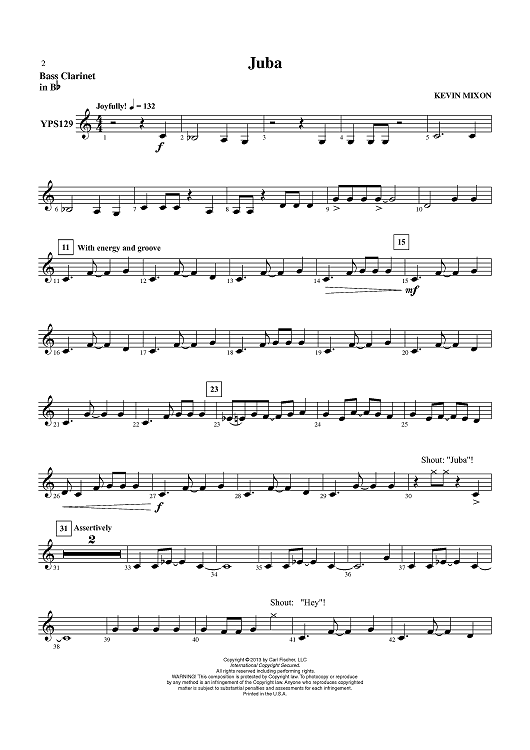 "Juba - Bass Clarinet in Bb" Sheet Music by Kevin Mixon