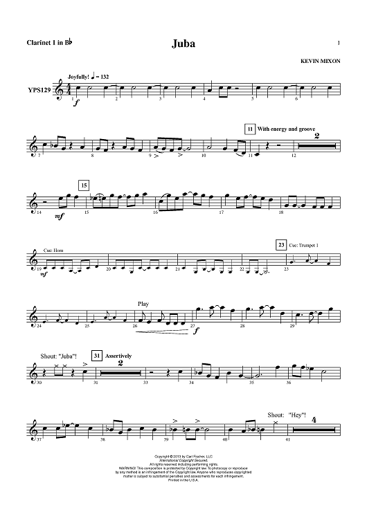 "Juba - Clarinet 1 in Bb" Sheet Music by Kevin Mixon