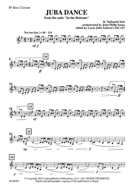Digital Sheet Music for Juba Dance - Bb Bass Clarinet by John Philip Sousa, Robert Nathaniel Dett, Loras John Schissel scored for Concert Band; id:509240