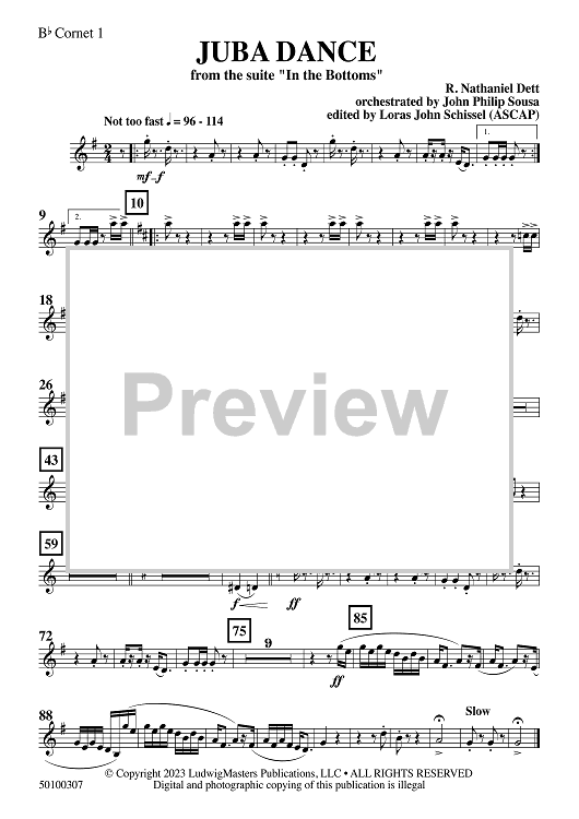 Digital Sheet Music for Juba Dance - Bb Cornet 1 by John Philip Sousa, Robert Nathaniel Dett, Loras John Schissel scored for Concert Band; id:509246
