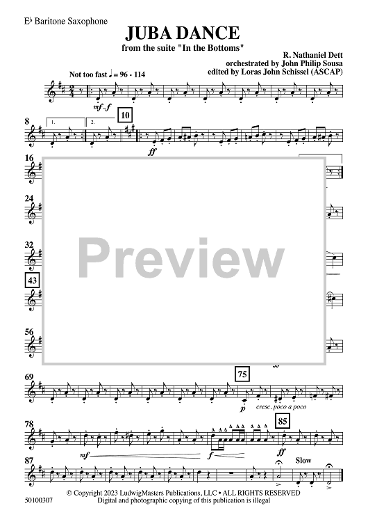Digital Sheet Music for Juba Dance - Eb Baritone Saxophone by John Philip Sousa, Robert Nathaniel Dett, Loras John Schissel scored for Concert Band; id:509244