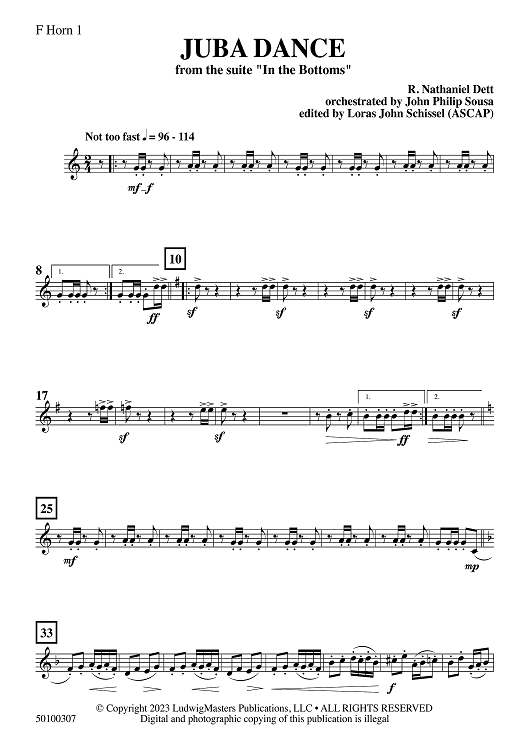 Digital Sheet Music for Juba Dance - F Horn 1 by John Philip Sousa, Robert Nathaniel Dett, Loras John Schissel scored for Concert Band; id:509250