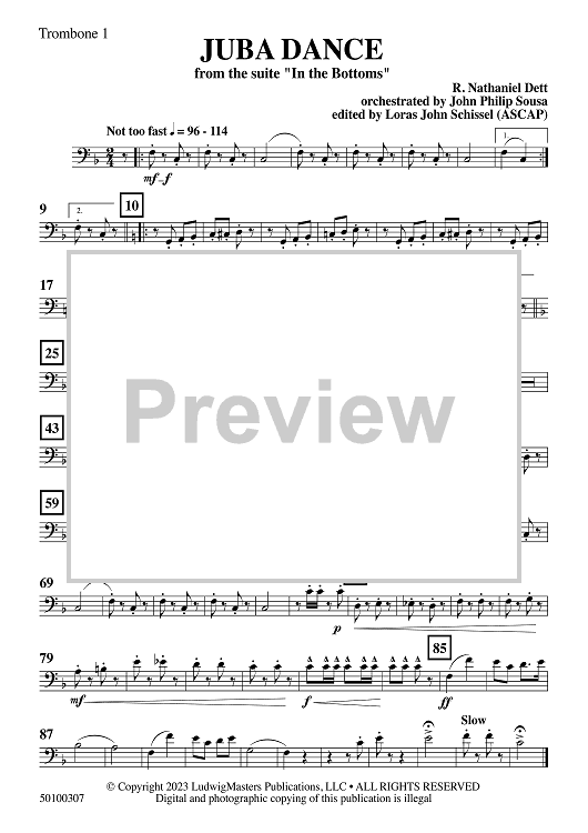 Digital Sheet Music for Juba Dance - Trombone 1 by John Philip Sousa, Robert Nathaniel Dett, Loras John Schissel scored for Concert Band; id:509254