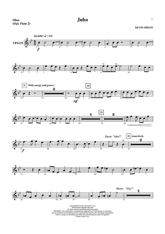 "Juba - Oboe (Opt. Flute 2)" Sheet Music by Kevin Mixon