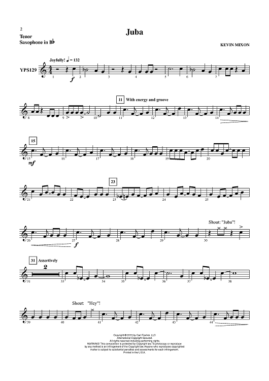 "Juba - Tenor Sax" Sheet Music by Kevin Mixon