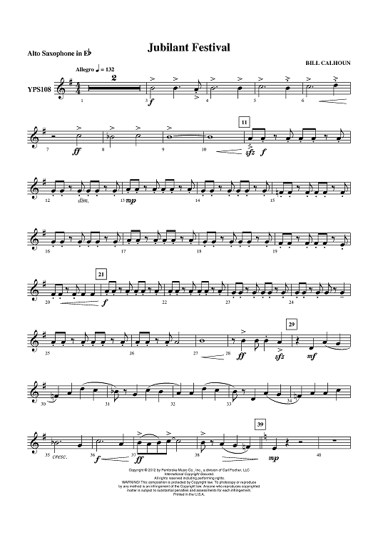 "Jubilant Festival - Alto Sax" Sheet Music by Bill Calhoun