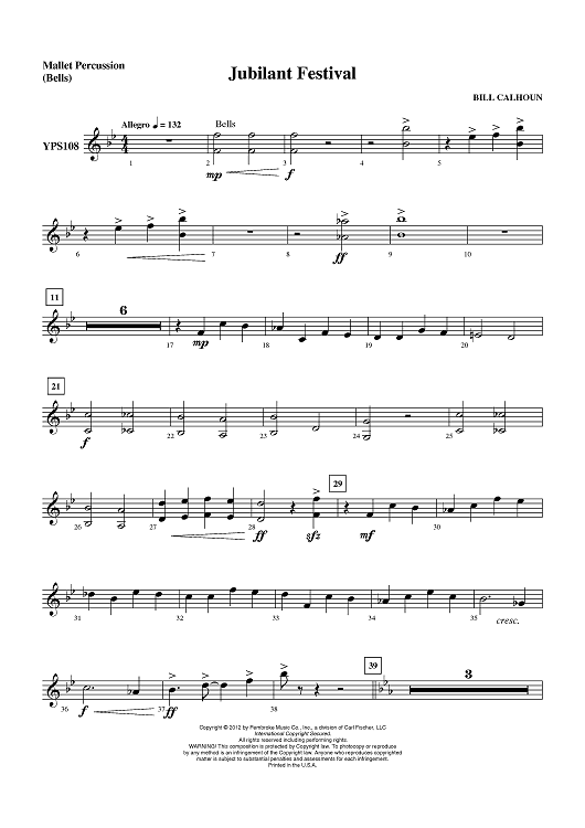 Digital Sheet Music for Jubilant Festival - Mallet Percussion by Bill Calhoun scored for Concert Band; id:431378
