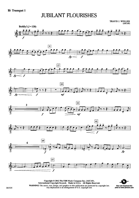 Digital Sheet Music for Jubilant Flourishes - Bb Trumpet 1 by Travis J. Weller scored for Concert Band; id:440036
