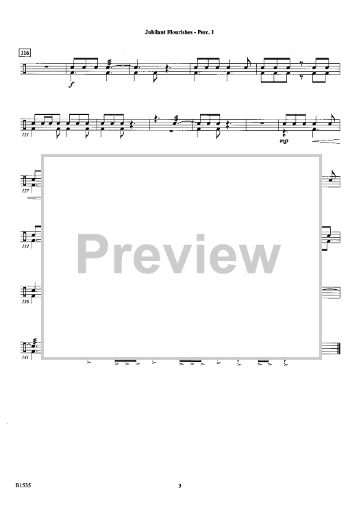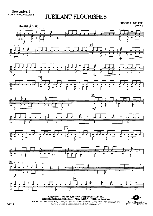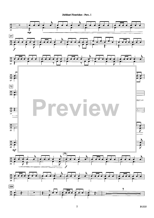 Digital Sheet Music for Jubilant Flourishes - Percussion 1 by Travis J. Weller scored for Concert Band; id:440049
