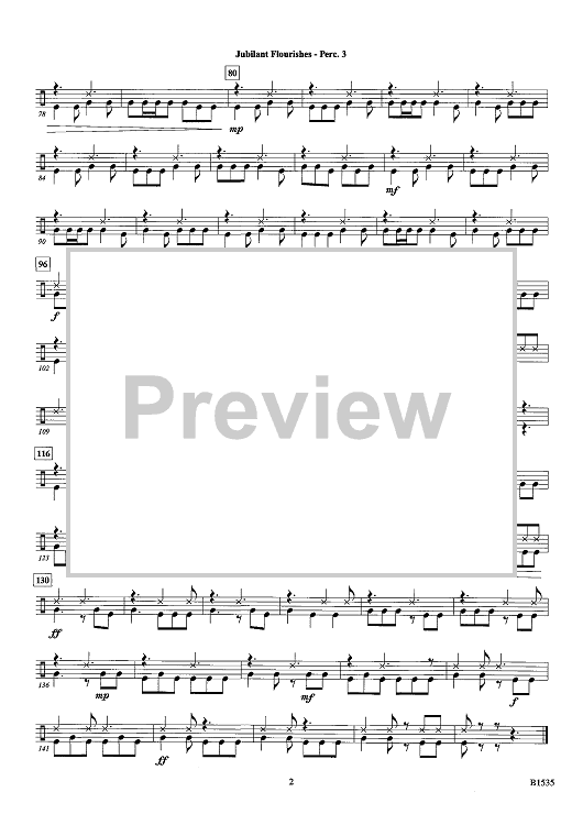 Digital Sheet Music for Jubilant Flourishes - Percussion 3 by Travis J. Weller scored for Concert Band; id:440051