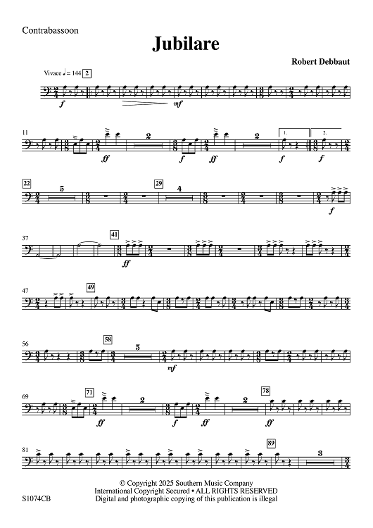 Digital Sheet Music for Jubilare - Contrabassoon by Robert Debbaut scored for Concert Band; id:508240
