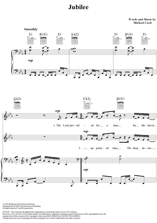 Digital Sheet Music for Jubilee by Michael Card scored for Piano/Vocal/Chords; id:115995