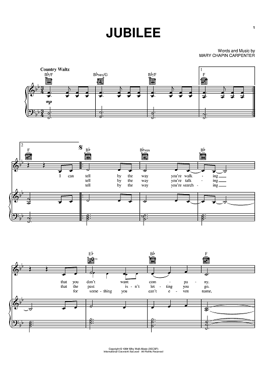 Digital Sheet Music for Jubilee by Mary Chapin Carpenter scored for Piano/Vocal/Chords; id:395967