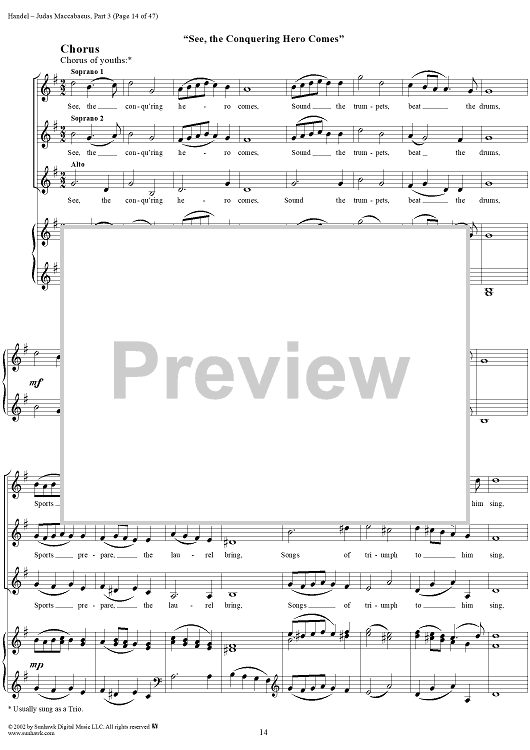 Digital Sheet Music for Judas Maccabaeus, HWV63, Part 3 - Vocal Score by George Frideric Handel scored for Four-part Mixed Chorus/Piano; id:291411