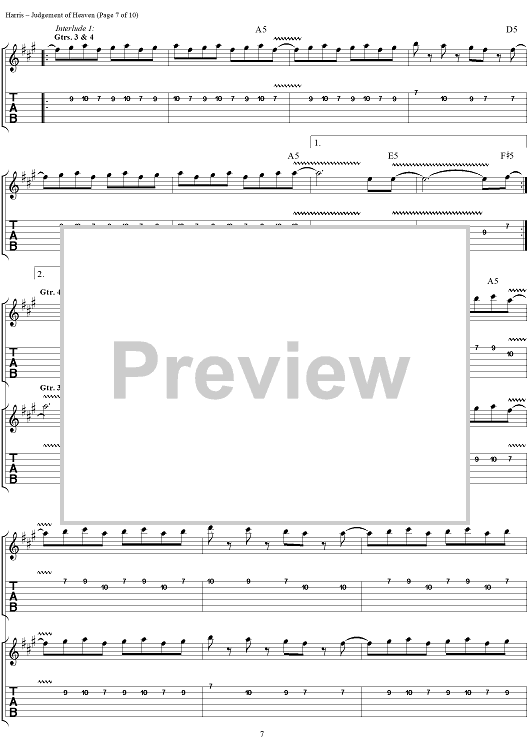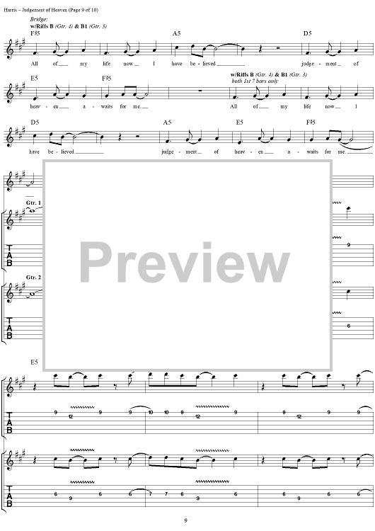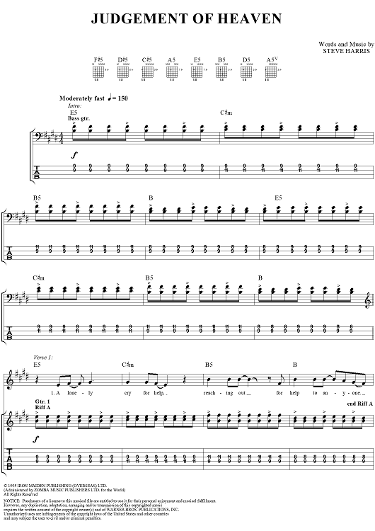 Digital Sheet Music for Judgement of Heaven by Steve Harris, Iron Maiden scored for Guitar Tab/Vocal; id:154856