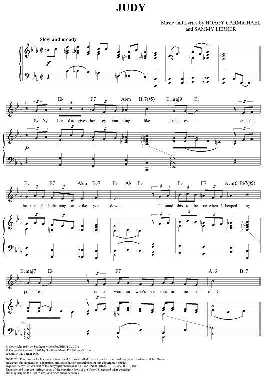 Digital Sheet Music for Judy by Judy Garland, Hoagy Carmichael, Sammy Lerner scored for Piano/Vocal/Chords; id:313436