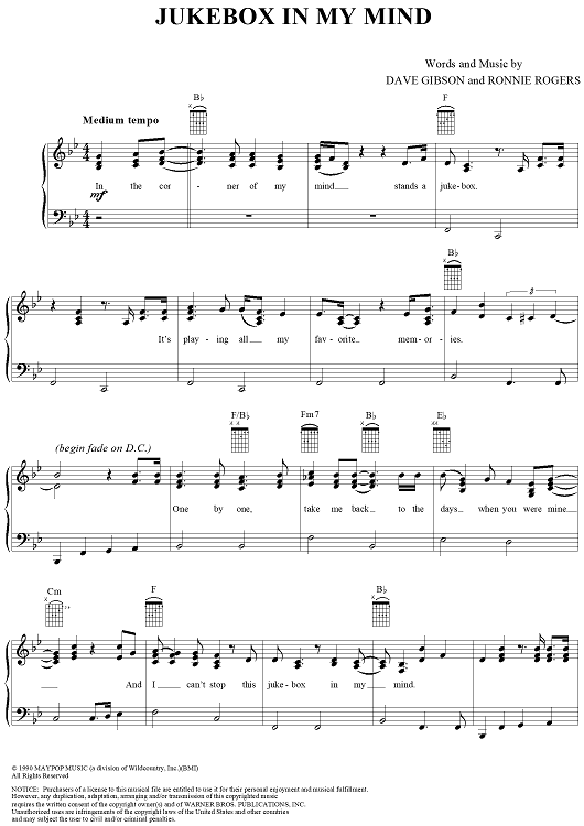 Digital Sheet Music for Jukebox in My Mind by Ronnie Rogers, Dave Gibson, Alabama scored for Piano/Vocal/Chords; id:191210