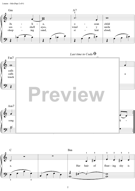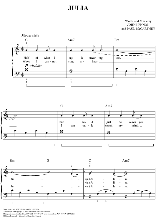 Digital Sheet Music for Julia by Paul McCartney, The Beatles, John Lennon scored for Easy Piano/Vocal/Chords; id:448665