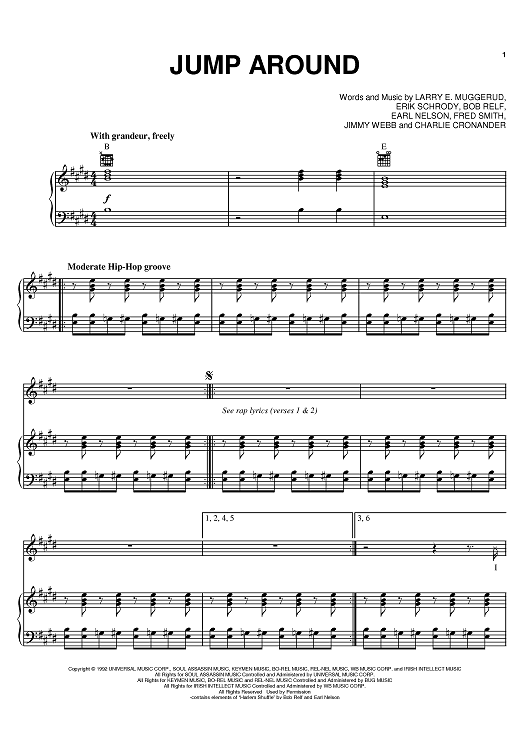 Digital Sheet Music for Jump Around by Everlast, Earl Nelson, Bob Relf, House Of Pain, Larry Muggerud scored for Piano/Vocal/Chords; id:398186
