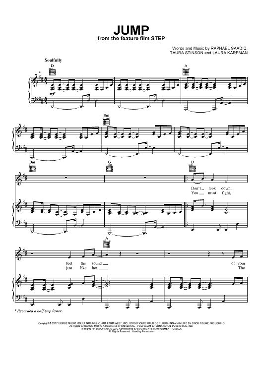 Digital Sheet Music for Jump - from the feature film Step by Raphael Saadig, Taura Stinson, Laura Karpman scored for Piano/Vocal/Chords; id:465695