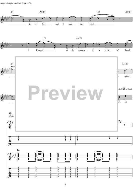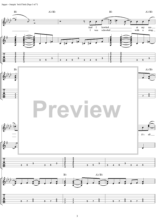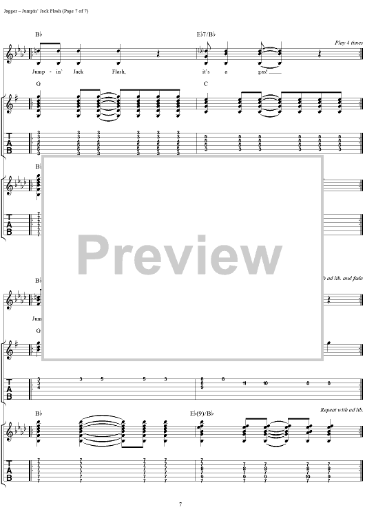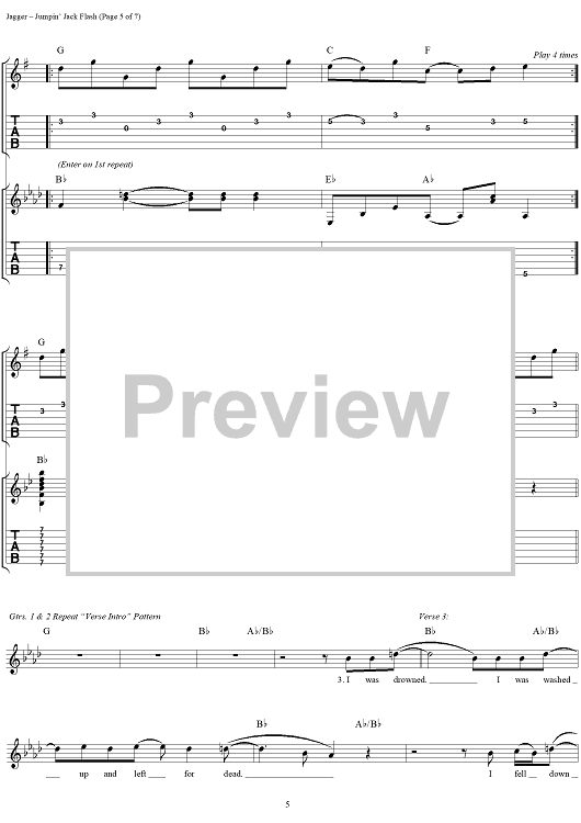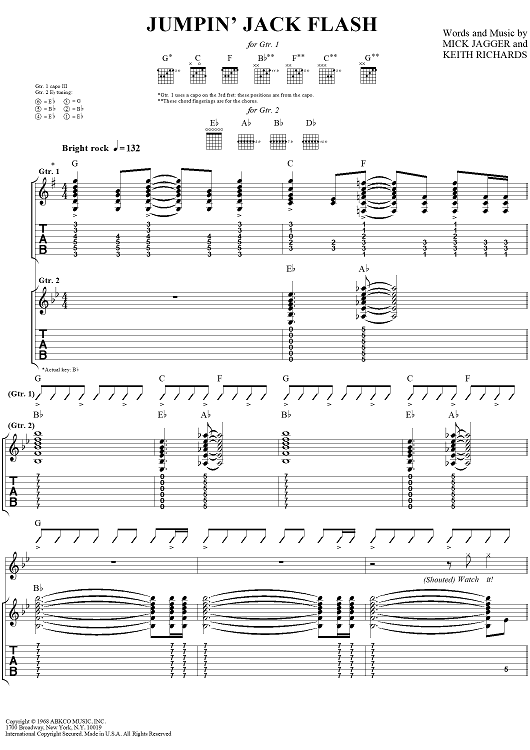Digital Sheet Music for Jumpin' Jack Flash by Keith Richards, The Rolling Stones, Mick Jagger scored for Guitar Tab/Vocal; id:316396
