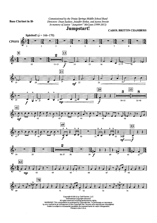 "Jumpstart! - Bass Clarinet in Bb" Sheet Music by Carol Brittin Chambers