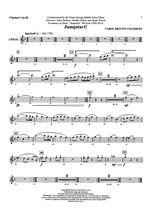 "Jumpstart! - Clarinet 1 in Bb" Sheet Music by Carol Brittin Chambers