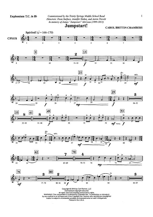 "Jumpstart! - Euphonium TC in Bb" Sheet Music by Carol Brittin Chambers