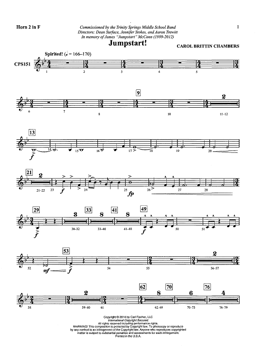 "Jumpstart! - Horn 2 in F" Sheet Music by Carol Brittin Chambers
