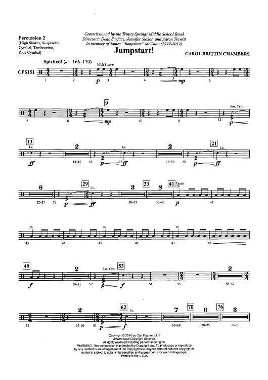 Digital Sheet Music for Jumpstart! - Percussion 2 by Carol Brittin Chambers scored for Concert Band; id:450973
