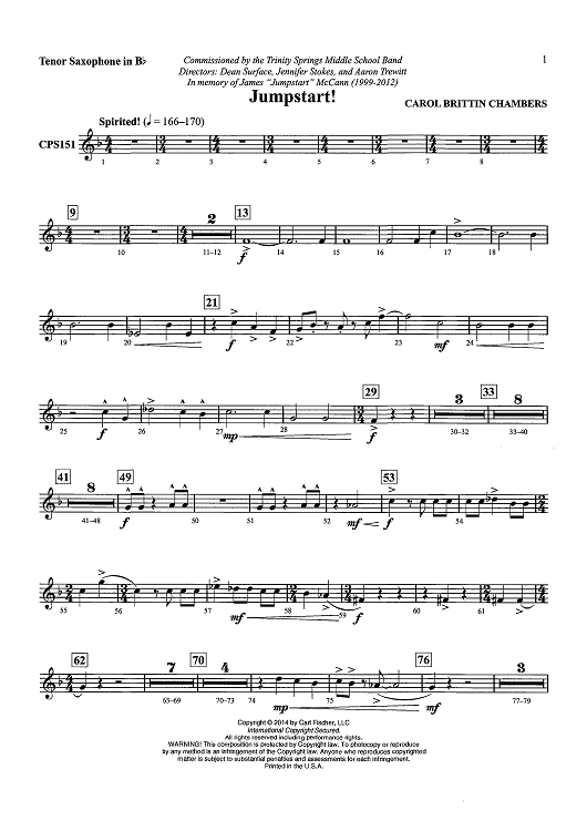 "Jumpstart! - Tenor Sax" Sheet Music by Carol Brittin Chambers