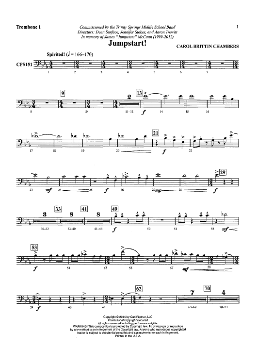 "Jumpstart! - Trombone 1" Sheet Music by Carol Brittin Chambers