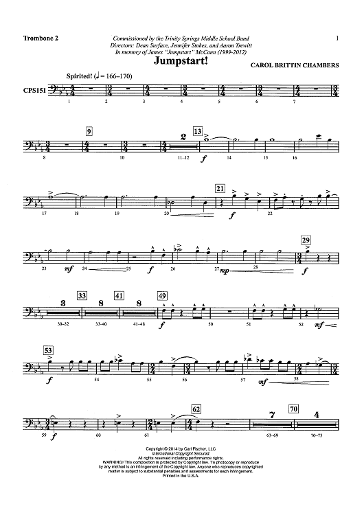 "Jumpstart! - Trombone 2" Sheet Music by Carol Brittin Chambers