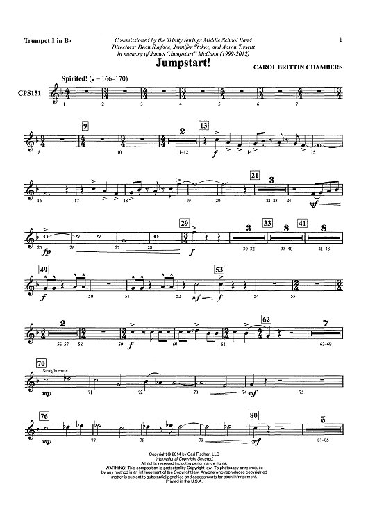 "Jumpstart! - Trumpet 1 in Bb" Sheet Music by Carol Brittin Chambers