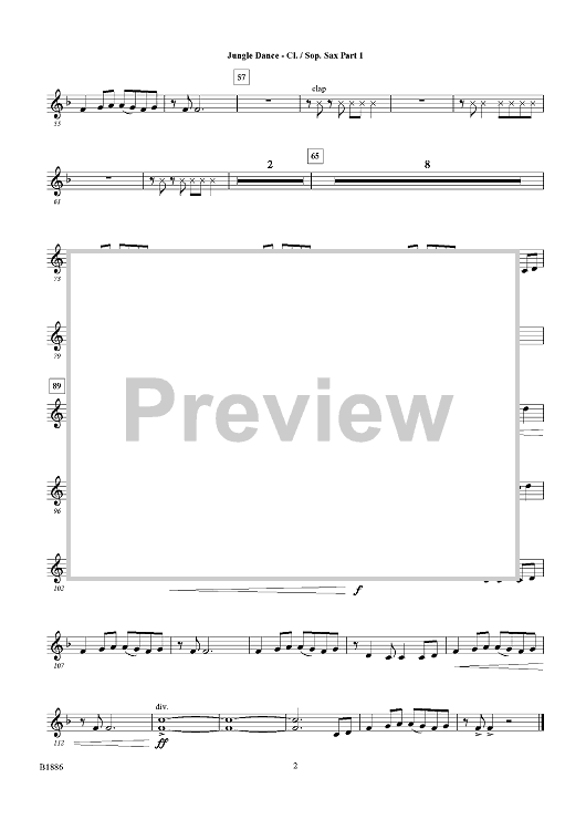 Digital Sheet Music for Jungle Dance - Bb Clarinet / Soprano Sax Part 1 by Brian Balmages scored for Concert Band; id:499016