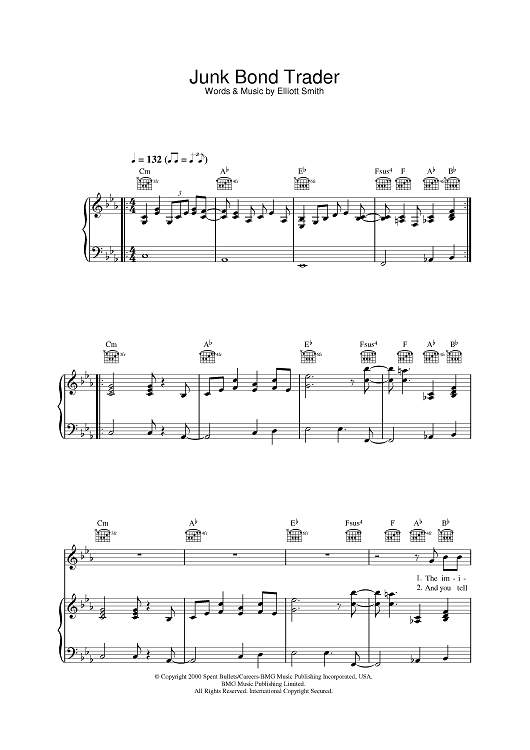 Digital Sheet Music for Junk Bond Trader by Elliott Smith scored for Piano/Vocal/Chords; id:398781