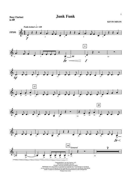 "Junk Funk - Bass Clarinet in Bb" Sheet Music by Kevin Mixon