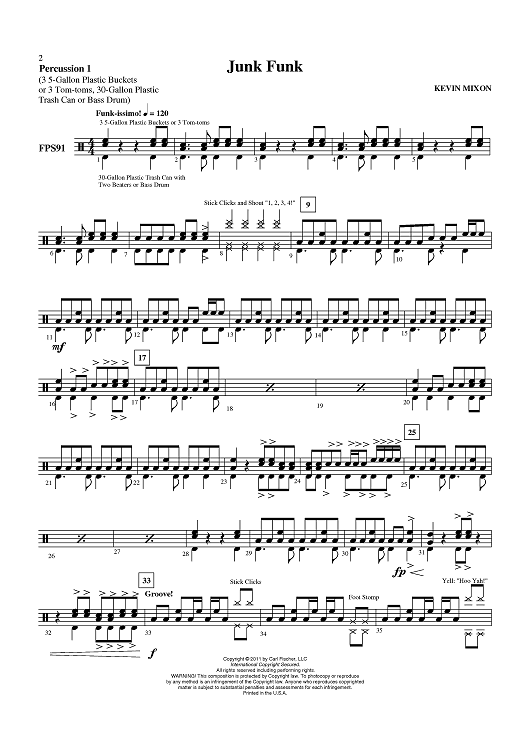 "Junk Funk - Percussion 1" Sheet Music by Kevin Mixon